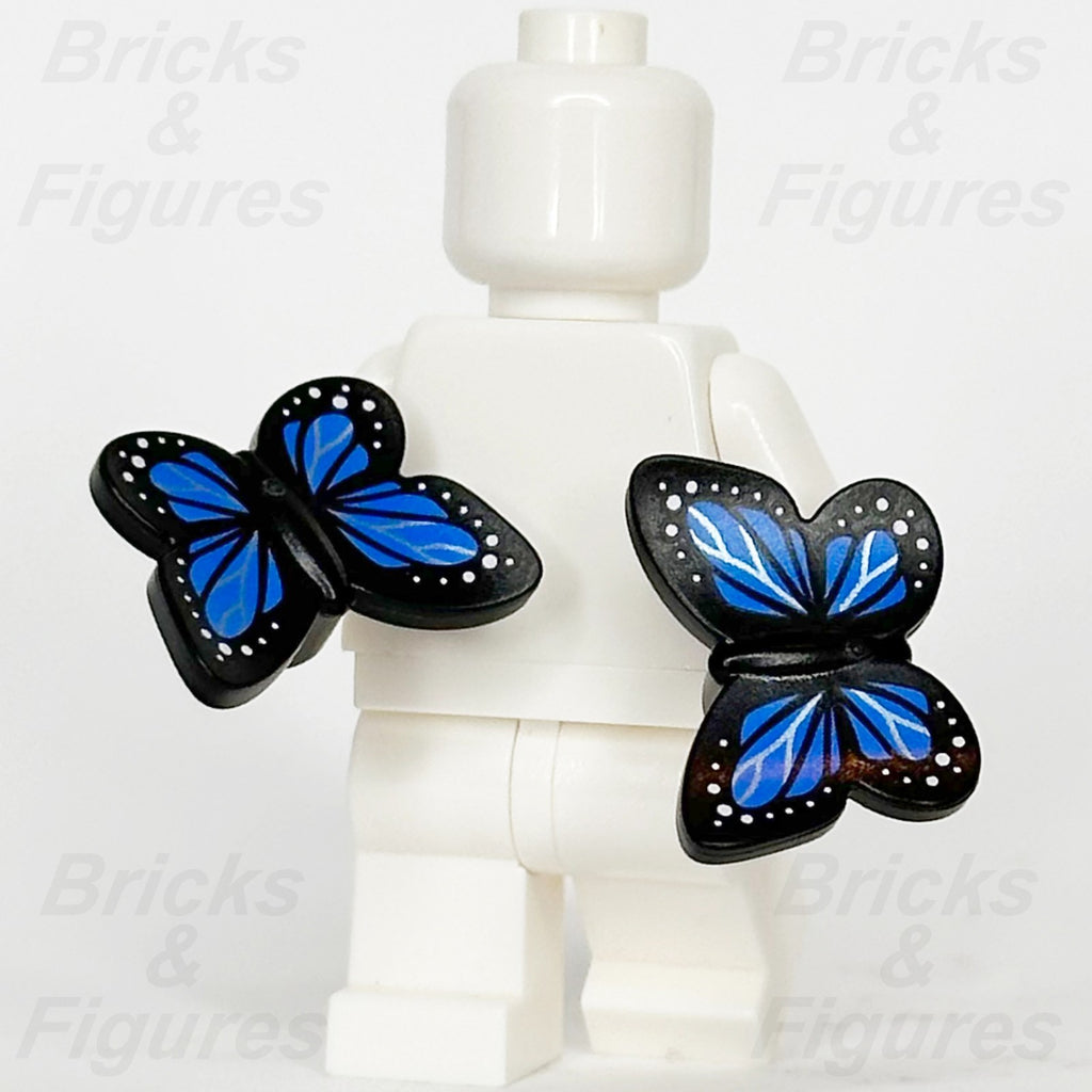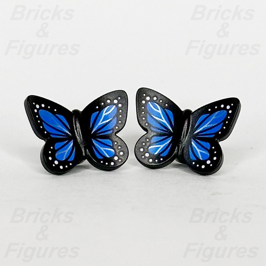 LEGO® Black Butterfly Animal Minifigure Part with Blue Wings, Insect, Bug x 2. Animal Bug, Insect. Black Butterfly with Stud Holder with Blue Wings and White Spots Pattern. Part Number 80674pb03.