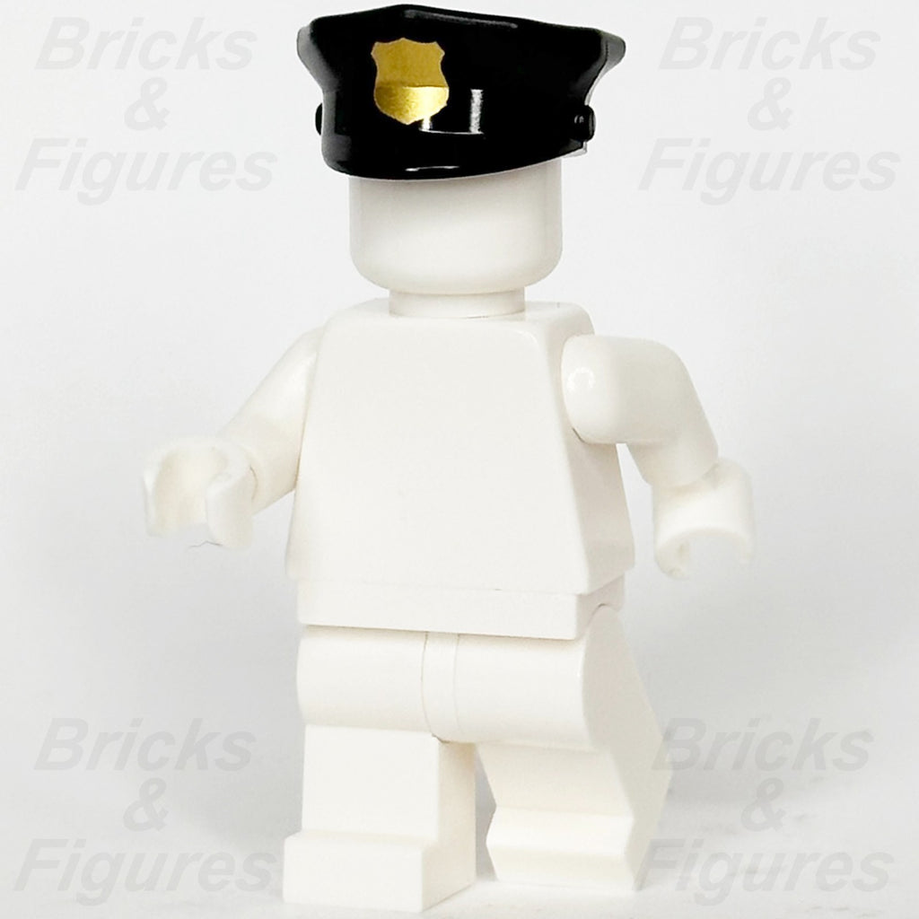 LEGO® Castle Police Officer Hat Minifigure Part Headgear - Part for Minifigures. Part Number 15530pb01. Black, Minifigure, Headgear Hat, Police with Gold Badge Pattern.