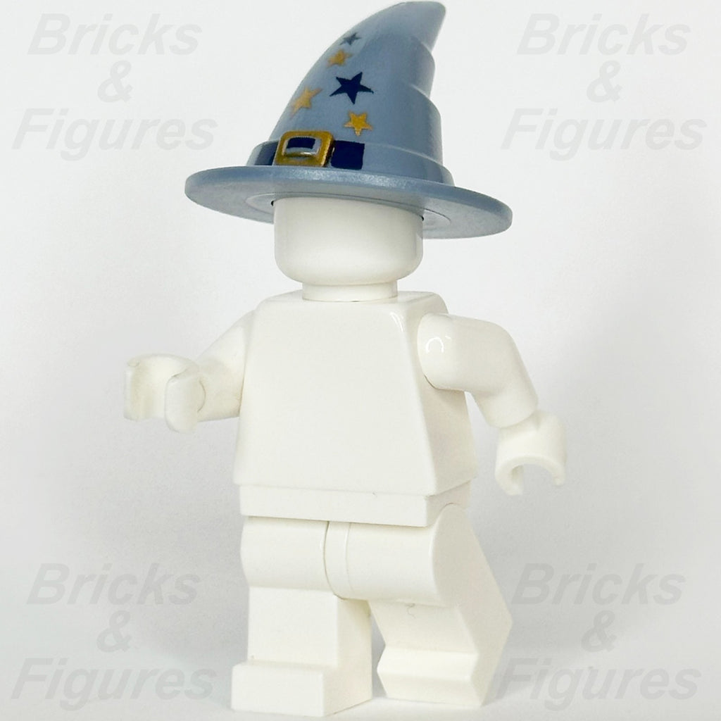 LEGO® Castle Good Wizard Hat Minifigure Part Headgear - Part for Minifigures (Fantasy Era). Part Number 6131pb02. Sand Blue Headgear Hat, Wizard / Witch with Gold Buckle and Stars Pattern. Rare.