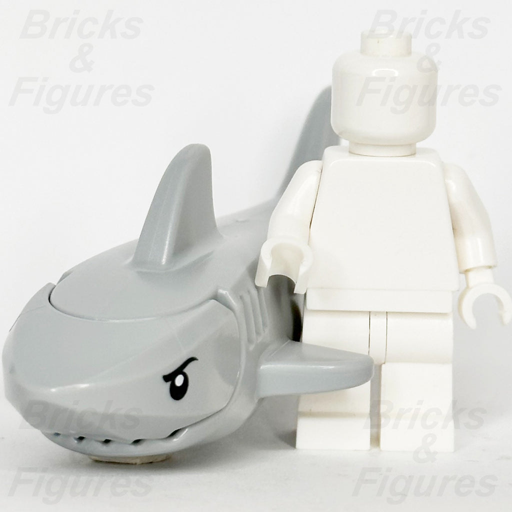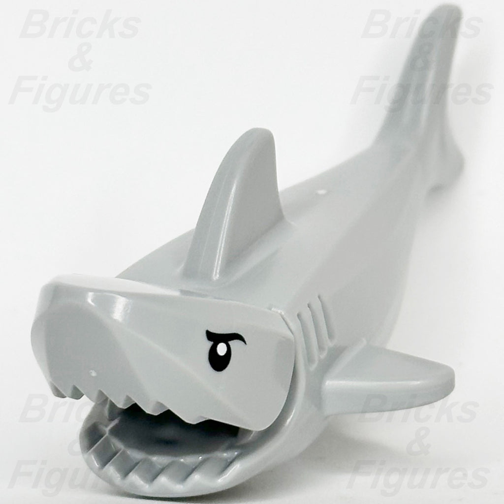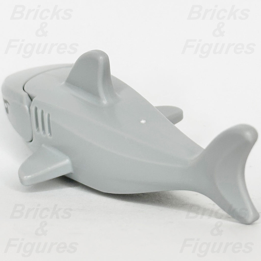 LEGO® City Shark Animal Minifigure Part (Coast Guard, Police, Arctic, Town). Water Animal, Fish. Part Number 14518c04pb04. Light Bluish Grey Shark with Rounded Nose and Debossed Gills with Black Eyes with Eyelids and White Full Circle Pupils Pattern.
