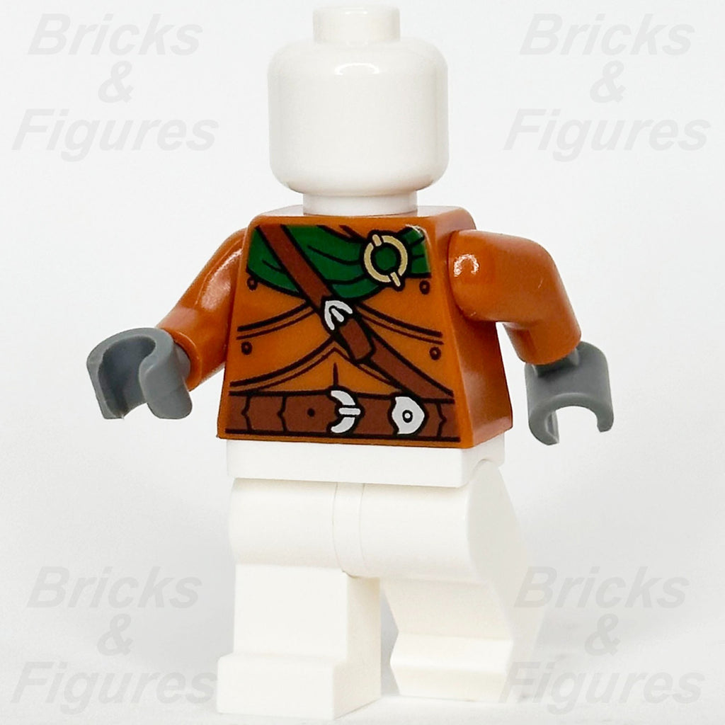 LEGO® Dungeons & Dragons Aarakocra Ranger Minifigure Torso Part (MINIFIGURES). Minifig Body Part Number 973pb5825c01. Dark Orange Torso Armor Plates, Dark Green Scarf, Gold Ring, Reddish Brown Belts, Silver Buckles, Pouch on Back Pattern / Dark Orange Arms / Dark Bluish Gray Hands.