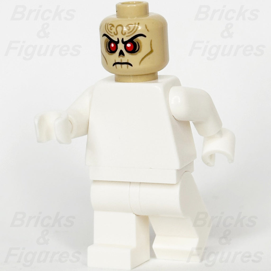 LEGO® Dungeons & Dragons Szass Tam Minifigure Head Part (MINIFIGURES). Minifig Body Part Number 3626pb3675. Tan Skull with Black Eyebrows, Nose and Mouth, Red Eyes, Dark Tan Filigree Tattoos and Contours, Frown Pattern.