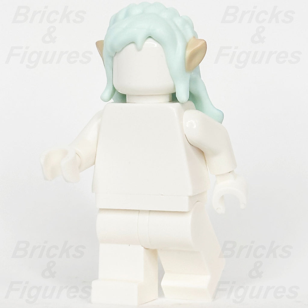 LEGO® Elves Ears Hair Minifigure Part, Naida Riverheart Hair. Headwear Part for Minifigures - 19201pb01. Light Aqua Hair Long Wavy with Dark Azure Tips, Braid, Bangs and Light Nougat Elves Ears Pattern. Rare Part.